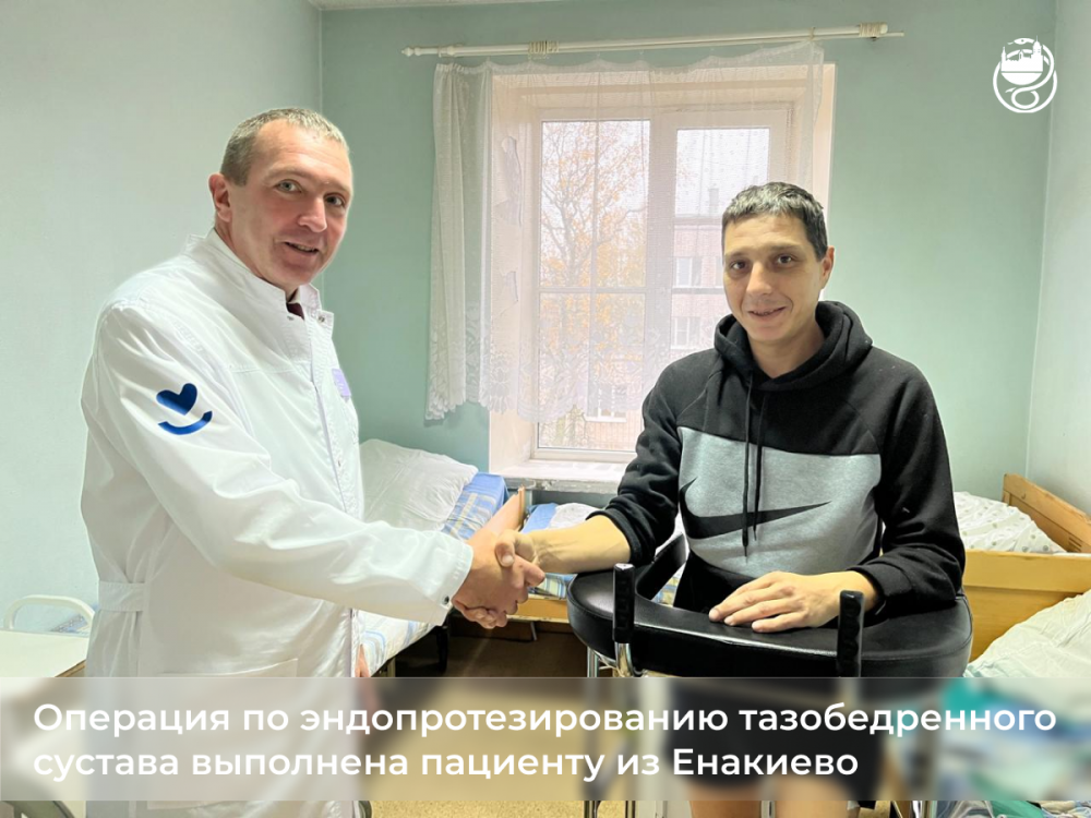 В июне главный врач Олег Карасёв возглавлял медицинскую бригаду, направленную для оказания помощи жителям Енакиево. Как врач-педиатр, он консультировал ребенка, которого на приём привёл отец. В ходе беседы с ним главный врач обратил внимание на серьезную проблему самого мужчины, который долгое время испытывал хронические боли в тазобедренном суставе.