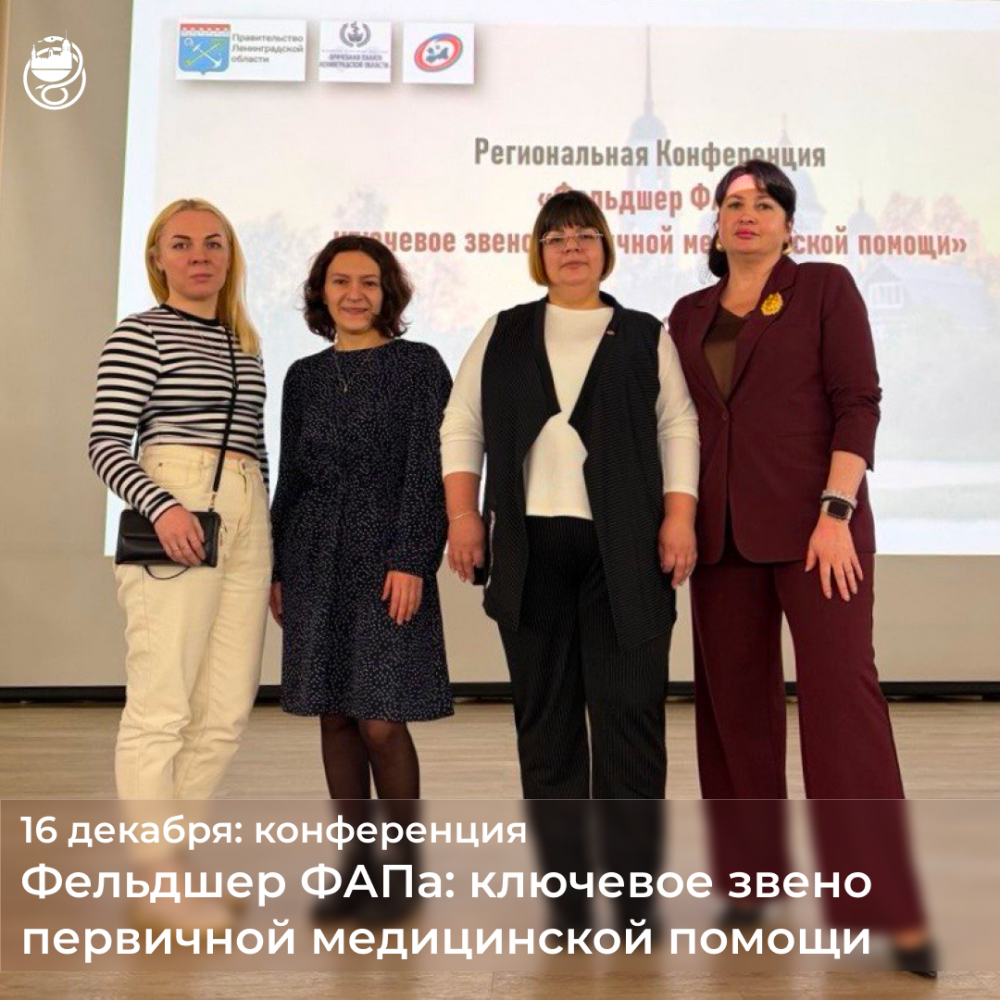 16 декабря специалисты больницы приняли участие в региональной конференции «Фельдшер ФАПа: ключевое звено первичной медицинской помощи», организованной Комитетом по здравоохранению Ленинградской области. В состав делегации вошли:главная медицинская сестра Оксана Концаренкостаршая медицинская сестра поликлиники Екатерина Пашковафельдшер ФАП п. Камышовка Юлия Гусевафельдшер ФАП п. Гончарово Марина Дроздова