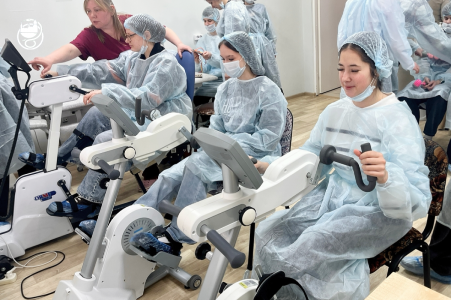 Настоящий восторг у гостей вызвало посещение отделения реабилитации, где ребятам разрешили не только смотреть, но и пробовать оборудование в действии. Под руководством медицинской сестры по массажу Ольги Евстафьевой школьники протестировали специализированную беговую дорожку, опробовали велотренажеры и тренажеры для восстановления мелкой моторики.