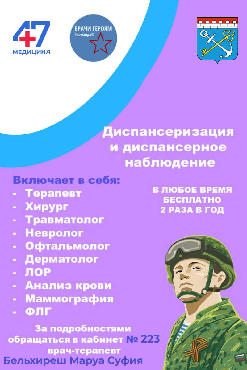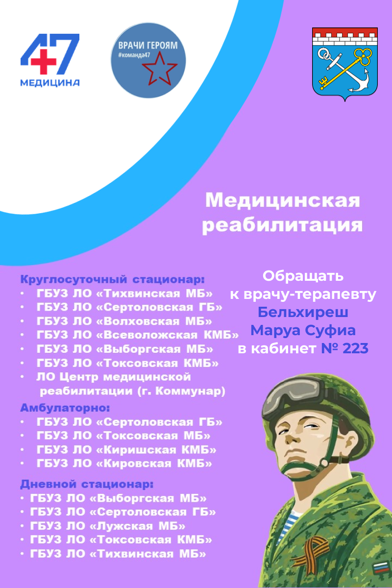 Ежеквартально в медицинских учреждения Ленинградской области проводятся акции «Врачи – Героям» для участников СВО и членов их семей.